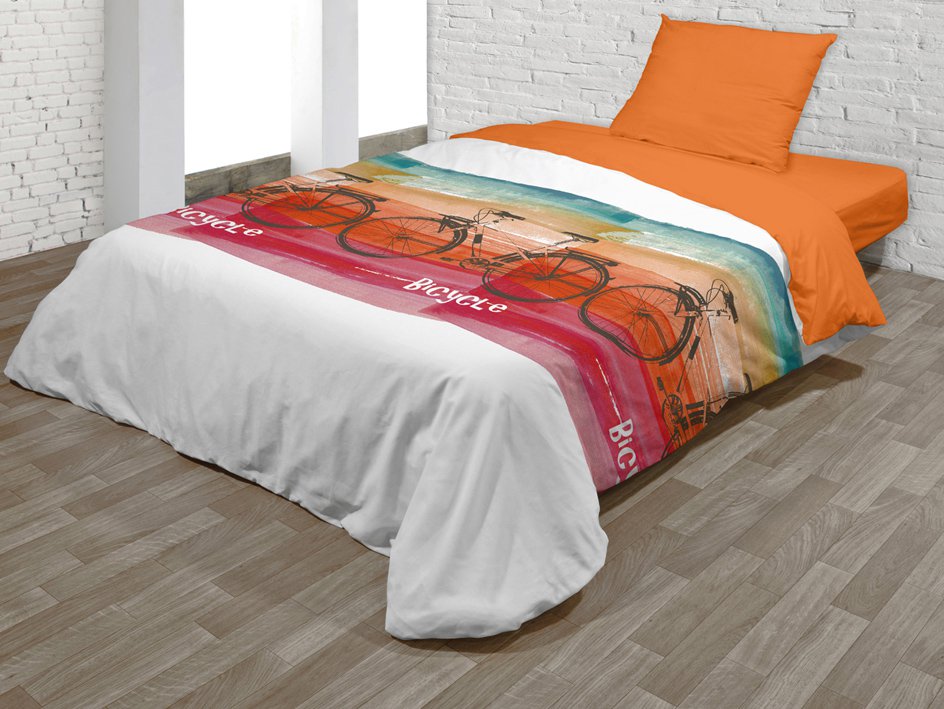 La funda nórdica BICICLETAS destaca por el colorido de su estampado. Con ella, darás alegría a la habitación juvenil y tus hijos dormirán de forma confortable y ligera sin pasar frío.