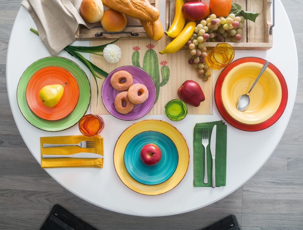 Alegría para tu mesa que hará las comidas más divertidas. Es lo que te aportará esta vajilla multicolor HAPPY con 18 piezas.