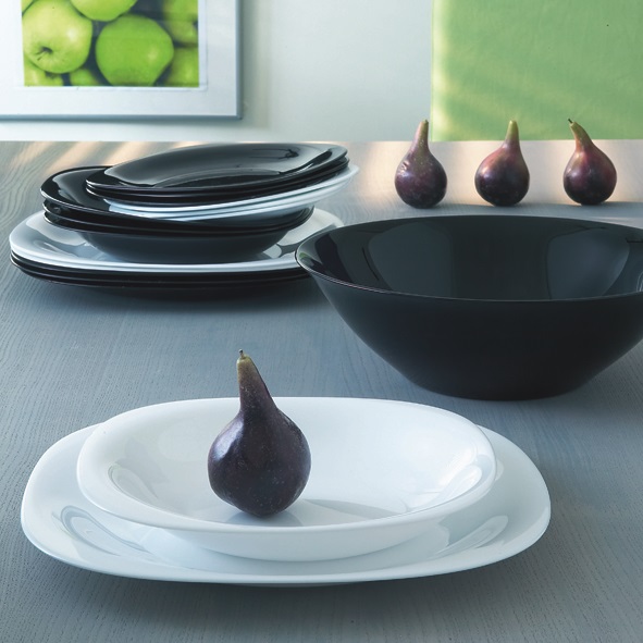 La vajilla CARINE es todo lo que necesitas para tu servicio de mesa. En colores blanco y negro, da como resultado un atractivo contraste cromático con estilo.