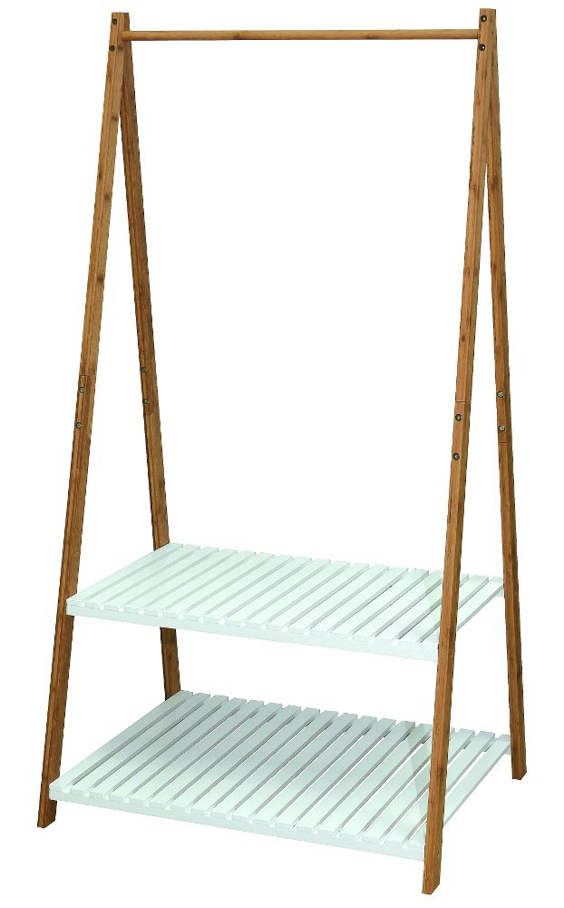 Organiza la ropa del día siguiente sin que se arrugue con este burro de ropa ESTANTE II. Además, sus 2 prácticos estantes inferiores te servirán para colocar los zapatos, el bolso y otros complementos.