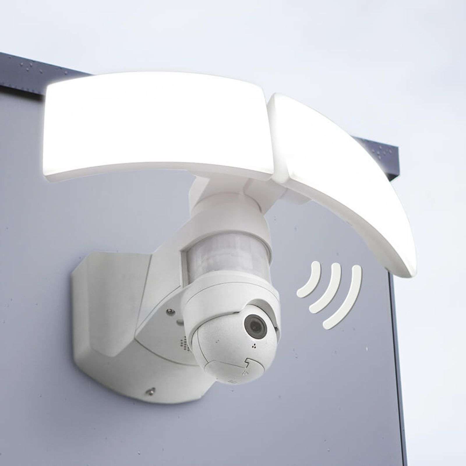 Aplique LED para exterior Elara Cam Secury’Light con sensor de movimiento y cámara El aplique LED para exterior Libra Cam sirve no solo para iluminar, sino también para vigilar la zona de entrada o una zona cualquiera de la casa o del garaje, pues dispone de LED adicionales de bajo consumo, un sensor de movimiento y una cámara con objetivo con gran angular. Gracias a la conexión del aplique al smartphone a través de la aplicación Lutec y también a la conexión Wi-Fi/WLAN, realiza tomas nítidas en alta resolución y en tiempo real directamente en el móvil. Con la aplicación Lutec también se puede controlar el aplique para exterior, es decir, se pueden atenuar los LED, comunicarse con los visitantes a través del altavoz y del interfono y activar una señal de alarma. Los LED, caracterizados por una iluminación de bajo consumo y una prolongada vida útil, están montados detrás de las cubiertas satinadas y producen una iluminación brillante en color blanco universal. Para facilitar el montaje se puede instalar primero por separado el soporte de pared y luego el aplique se engancha y se fija al soporte. Funciones de la aplicación: Transmisión en directo con notificaciones, conexión Wi-Fi, memoria de vídeo e imágenes, control y cambios de la configuración de seguridad. Grado de eficiencia energética:A+