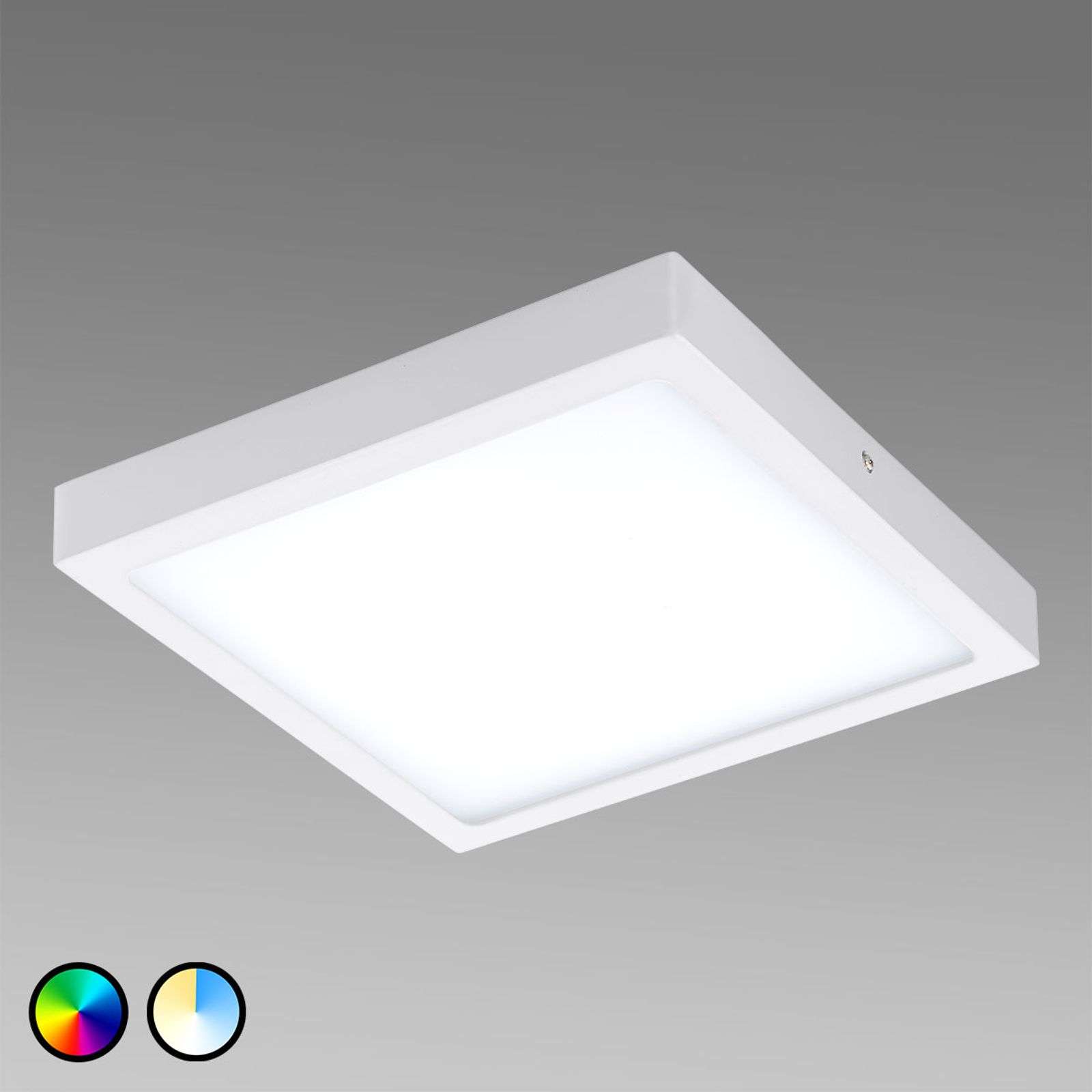 Plafón LED Fueva-Connect en diseño cuadrado y controlable vía app Haciendo uso de la aplicación disponible gratuitamente para Android e IOS, podrá manejar el plafón LED Fueva Connect con comodidad y, sobre todo, con flexibilidad desde el smartphone o la tableta. Y todo ello incluso desde fuera de casa. Las opciones de iluminación son infinitas ya que le permiten ajustar la lámpara en los colores y escenarios luminosos más variopintos tanto vía aplicación móvil como haciendo uso de un mando a distancia, el cual podrá encontrar en nuestra gama de accesorios. La iluminación blanca permite regularse fácilmente desde una luz de 2700 K en color blanco cálido hasta una luz diurna de 6500 K. Asimismo, es posible seleccionar una iluminación de color de entre más de 16 millones de colores; la intensidad luminosa permite atenuarse fácilmente en cualquiera de los colores luminosos que seleccione; es posible graduar el cambio de color a diferentes velocidades; puede crear, memorizar y seleccionar sus propias secuencias de iluminación así como otras muchas funciones. El plafón LED Fueva Connect de diseño cuadrado está compuesto por una pieza metálica fundida y se ha equipado con un difusor de plástico satinado para garantizar una emisión luminosa uniforme. Grado de eficiencia energética:A+