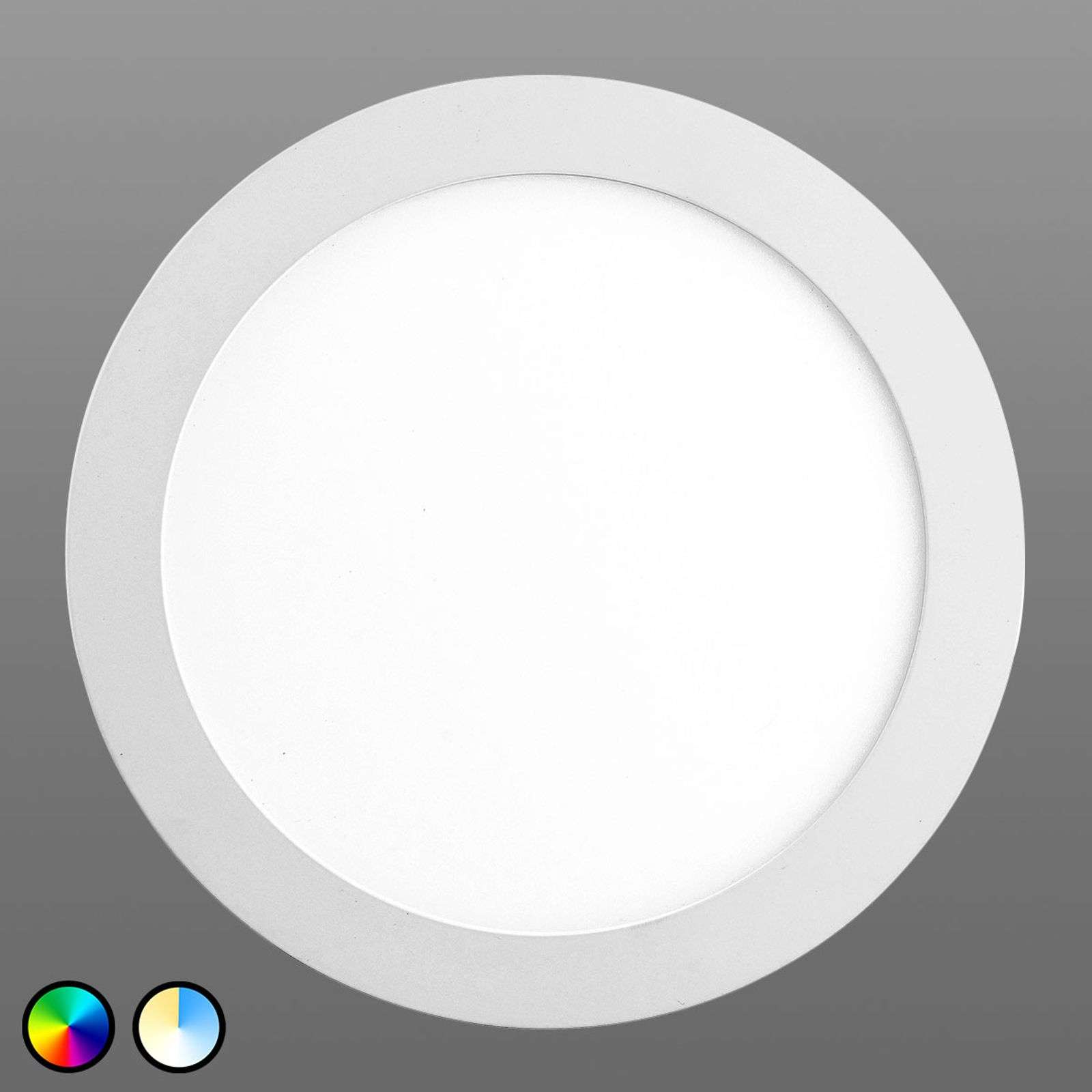 Foco LED empotrado Fueva Connect redondo, controlable mediante app El foco LED empotrado Fueva Connect, redondo y de color blanco, permite elegir el tipo de iluminación con total libertad y se puede controlar desde un móvil o una tablet. El foco está hecho de metal fundido en acabado de color blanco, que se acompaña de un difusor de plástico, es adecuada para prácticamente cualquier combinación de colores. La iluminación se puede controlar incluso desde fuera de casa mediante la aplicación móvil gratuita, disponible para Android e IOS. Además de luz blanca de entre 2700 K (blanco cálido) y 6500 K (luz diurna), se puede elegir entre 16 millones de vívidos colores. La intensidad de iluminación se puede regular progresivamente y se pueden crear, guardar y recuperar diferentes escenarios de iluminación. También se pueden establecer secuencias de colores a diferentes velocidades y agrupar lámparas, entre otras muchas funciones. Las posibilidades de iluminación son casi ilimitadas. Otra opción de control la ofrece el mando a distancia, que se halla disponible como accesorio. Se puede pedir conjuntamente con la lámpara. El mando a distancia también permite elegir entre toda la gama de colores y temperaturas de luz blanca, regular la intensidad de iluminación, establecer secuencias de colores a diferentes velocidades y crear, guardar y recuperar escenarios de iluminación. Grado de eficiencia energética:A+