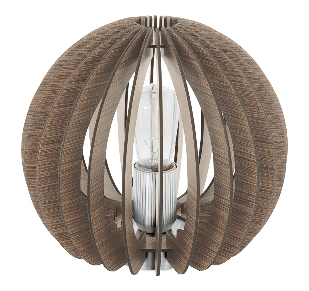 La lámpara de sobremesa ESTEL combina de forma perfecta con el mobiliario de tu salón. Si has apostado por los tradicionales tonos en color madera, podrás seguir la línea y disponer de un punto de iluminación de refuerzo en cualquier parte de tu salón. Sus líneas perfectamente geométricas transmiten una imagen de orden que dará un sentido de coherencia a la decoración. (Casquillo de rosca E14. Potencia máxima: 40 W. Bombilla no incluida).