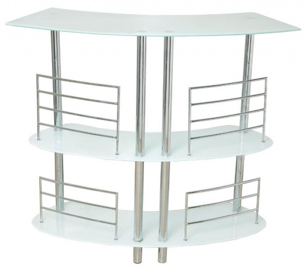 Convierte tu cocina en un lugar de encuentro para tus amigos y familiares. Gracias a la barra de bar NEW ICE podrás ofrecer a tus visitas un espacio divertido donde charlar animadamente y tomar algo. La barra de bar NEW ICE tiene una resistente estructura fabricada en metal cromado y unos soportes cilíndricos modernos y llamativos. Además, dispone de 2 estanterías para que puedas colocar los licores y bebidas que más te gusten. Y también, el sobre, fabricado en cristal, te servirá para tener ordenados los utensilios que necesitas por si te animas a elaborar apetecibles cóctel.