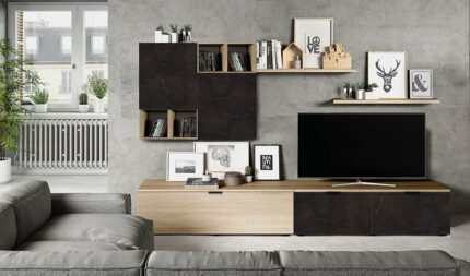 El mueble TV DIMARO te atrapará por su elegante combinación bicolor. Si apuestas por un estilo de corte clásico y tradicional, no busques más. Su estructura apuesta por la simplicidad y la funcionalidad, revestidas ambas con un aspecto cálido, acogedor y con el encanto de siempre. En sus 2 amplios cajones tendrás espacio para guardar aquellos objetos que quieras tener a mano en el salón o tu videoteca particular, si lo prefieres. Además, este mueble TV DIMARO dispone de 2 huecos para los dispositivos relacionados con el televisor, que tiene su espacio en el sobre. Para culminar su buen gusto, te recomendamos instalar la iluminación Led opcional.