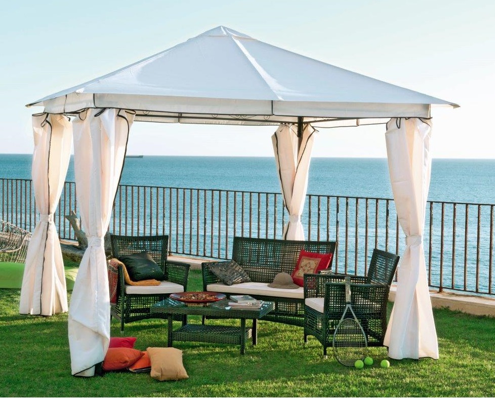 Que si hace mucho calor, que si saldremos a la terraza cuando caiga el sol… se acabaron las excusas. Con la pérgola ELEGANCE podrás aprovechar al máximo tu terraza. Con su estructura de acero y su tejido en poliéster blanco, esta pérgola está fabricada para aguantar las altas temperaturas del verano. Con la pérgola ELEGANCE instalada en tu terraza podrás disfrutar de una refrescante sombra mientras te relajas. Mesa de centro, sillones y banco no incluidos.