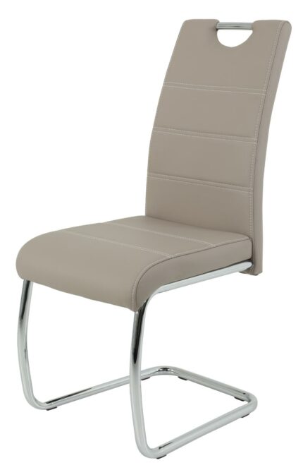 La elegancia de la estructura cromada y las líneas puras del tapizado en piel sintética se unen en esta silla de comedor TIANA. Sin duda, te la recomendamos para salones de estilo contemporáneo, ya que reforzarán su identidad moderna. El respaldo de esta silla incorpora leves toques decorativos en forma de líneas, que recuerdan al aspecto natural de una hoja. Su estructura cromada es ideal para combinarla con mesas que tengan esctructura lacada o de metal, y sobre de cristal templado. La silla de comedor TIANA es fiel reflejo de la perfecta unión entre estética y utilidad.