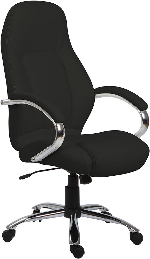 El diseño elegante y el tapizado en piel sintética del sillón de oficina KYRA le darán un aspecto muy limpio y un brillo especial al despacho o espacio de trabajo de tu casa, gracias también a su base cromada. Su altura es regulable con elevación a gas, por lo que se adaptará a tus necesidades enseguida. Además, cuenta con reposabrazos para esos momentos en que necesitas hacer un paréntesis del trabajo. El sillón de oficina KYRA te hará mucho más llevadero el tiempo que pases ocupado frente al ordenador o estudiando.